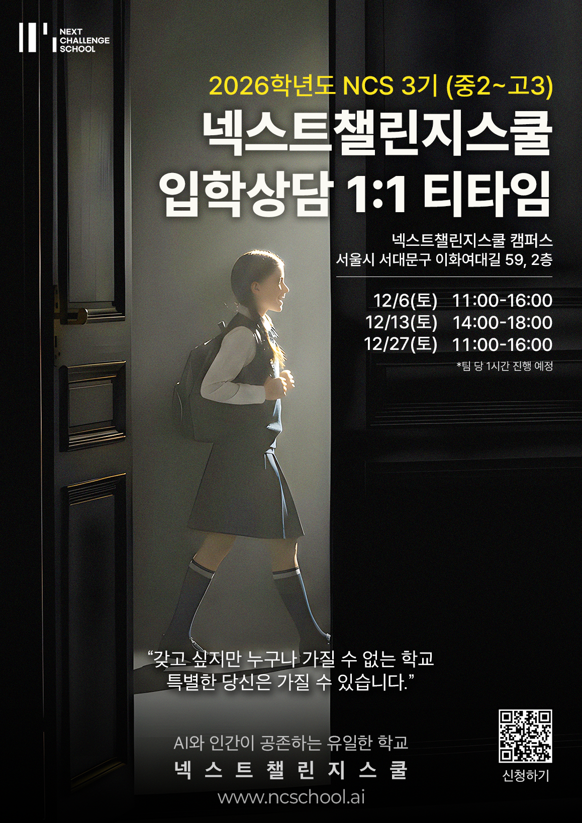 [넥스트챌린지스쿨 NCS] 10월 입학설명회(2026학년도) & AI 미래 대학 진로특강 개최!🔥 AI 대전환 시대, 우리 아이의 대학 진로를 준비하는단 하나의 선택!🏫